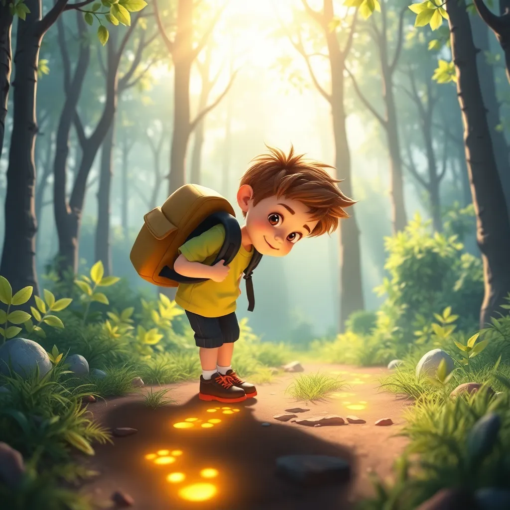 Bir zamanlar, adı Deniz olan meraklı bir çocuk vardı. Deniz, her gün yeni yerler keşfetmeyi çok severdi. Bir gün, evlerinin arkasındaki ormanda yürürken, kendi ayak izlerinin parlak bir şekilde ışıldadığını fark etti. İzler, sanki altın tozu serpilmiş gibi hafifçe parlıyordu. Çok şaşırdı ve eğilip izlere dokundu. Parmaklarının ucunda sıcak, tatlı bir karıncalanma hissetti. 'Acaba bu izler beni nereye götürür?' diye düşündü heyecanla. Sırt çantasını düzeltti ve izleri takip etmeye karar verdi.