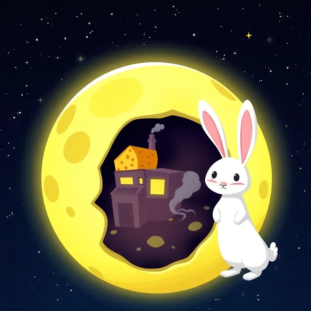 Uzun zaman önce, gökyüzünde parlayan gümüş bir top gibi duran Ay'ın, kimsenin görmediği bir yüzü vardı. Arka yüzünde, yıldızların bile sırrını sakladığı özel bir yer bulunuyordu. Burası, Ay'ın en tatlı sırrı olan 'Parlayan Peynir Fabrikası'ydı. Fabrikanın bacalarından çıkan duman, aslında minik yıldız tozlarından oluşuyor ve gökyüzüne karışınca ışıl ışıl parlıyordu. Fabrikanın bekçisi ise Ay'ın en eski dostu, beyaz tüylü, uzun kulaklı bir tavşan olan Pıtırcık'tı. Pıtırcık, her gece Dünya'daki çocuklar uyurken, özel peynirlerini hazırlamak için kolları sıvardı.