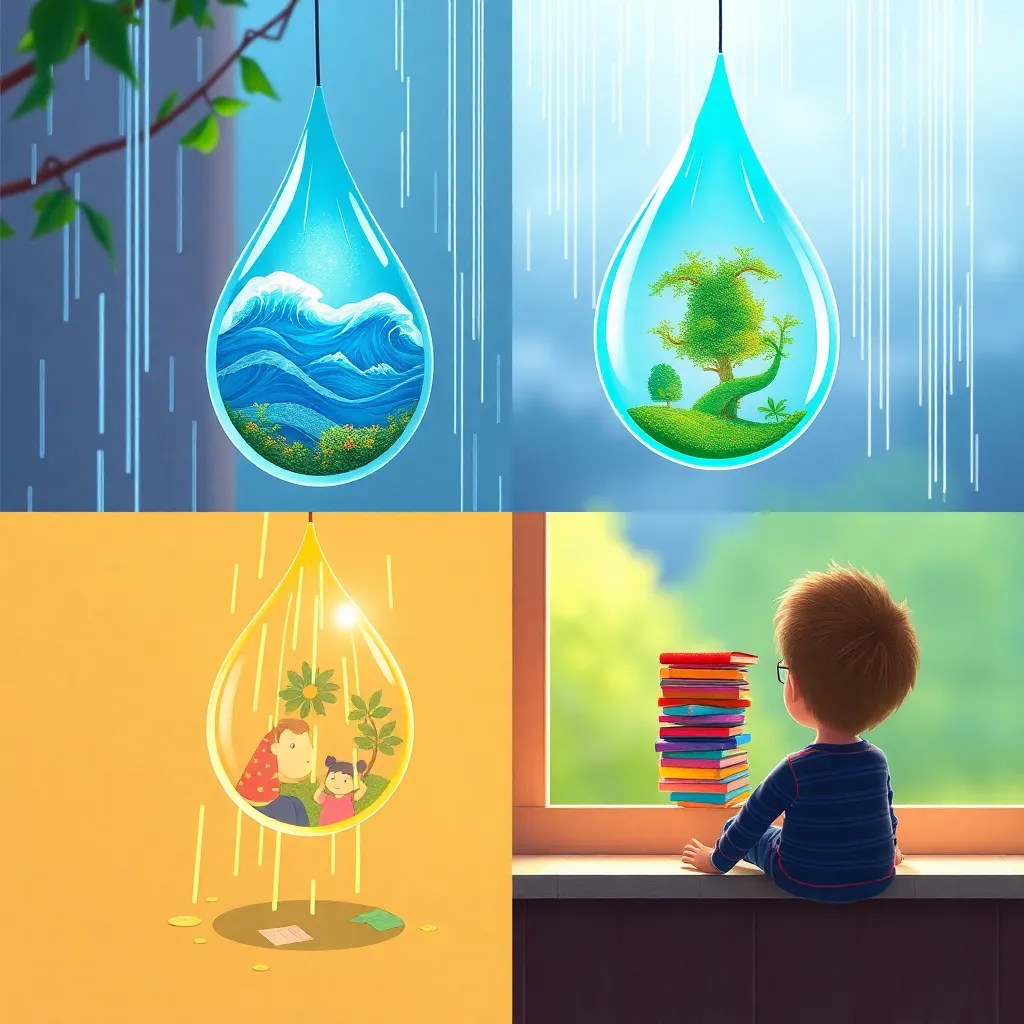 O günden sonra, Deniz yağmuru hiç aynı şekilde görmedi. Artık her damlanın bir hikayesi, bir mesajı olduğunu biliyordu. Bahçedeki çiçekleri sulayan yağmurun aslında 'Bu çiçekler çok güzel olmuş' dediğini hayal ediyordu. Pencere camından aşağı süzülen damlaların 'Merhaba, yine ben!' yazdığını düşünüyordu. En güzeli, artık sadece yağmurda değil, çiyde, çeşme suyunda, hatta denizde bile damlaların dilini anlayabildiğini hissetmesiydi. Bir gün annesine: 'Dünya aslında birbirine mektuplar yazan su damlalarıyla dolu' dedi. Annesi gülümseyerek: 'Belki de hepimiz birbirimize görünmez mektuplar yazıyoruz, sadece bunu fark edecek kadar dikkatli bakmıyoruz' diye karşılık verdi. Deniz bu fikri çok sevdi ve o gün, annesine özel bir 'teşekkür' mektubu yazdı - bu sefer kurşun kalemle, su damlaları değil.