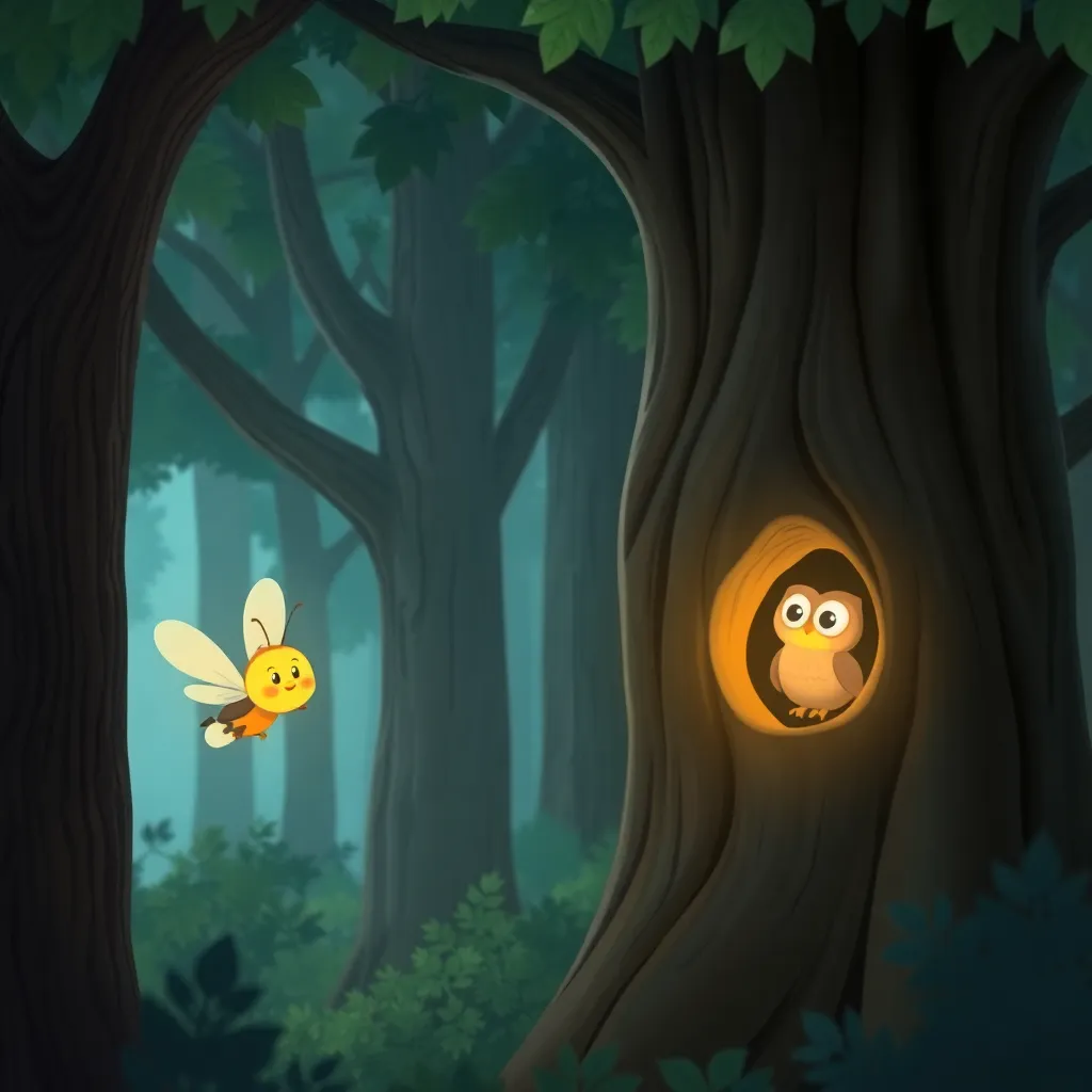 Derin, karanlık ve sessiz bir ormanda, diğer tüm hayvanlar uykuya dalmışken, küçük ateşböceği Lumi uyanıktı. Lumi, minik bedeninden yayılan sıcak, altın sarısı bir ışıkla parlıyordu. Ancak bu gece bir şey farklıydı. Lumi, ormanın ne kadar karanlık ve hüzünlü göründüğünü düşünüyordu. 'Keşke arkadaşlarım gece de oyun oynayabilse, yıldızları seyredebilecek kadar ışık olsa,' diye mırıldandı kendi kendine. Bu düşünceyle, kanatlarını çırparak yükseldi ve ormanın en yüksek ağacının tepesine, Bilge Baykuş'un yuvasına doğru uçtu. Belki ona bu konuda bir fikri vardır.