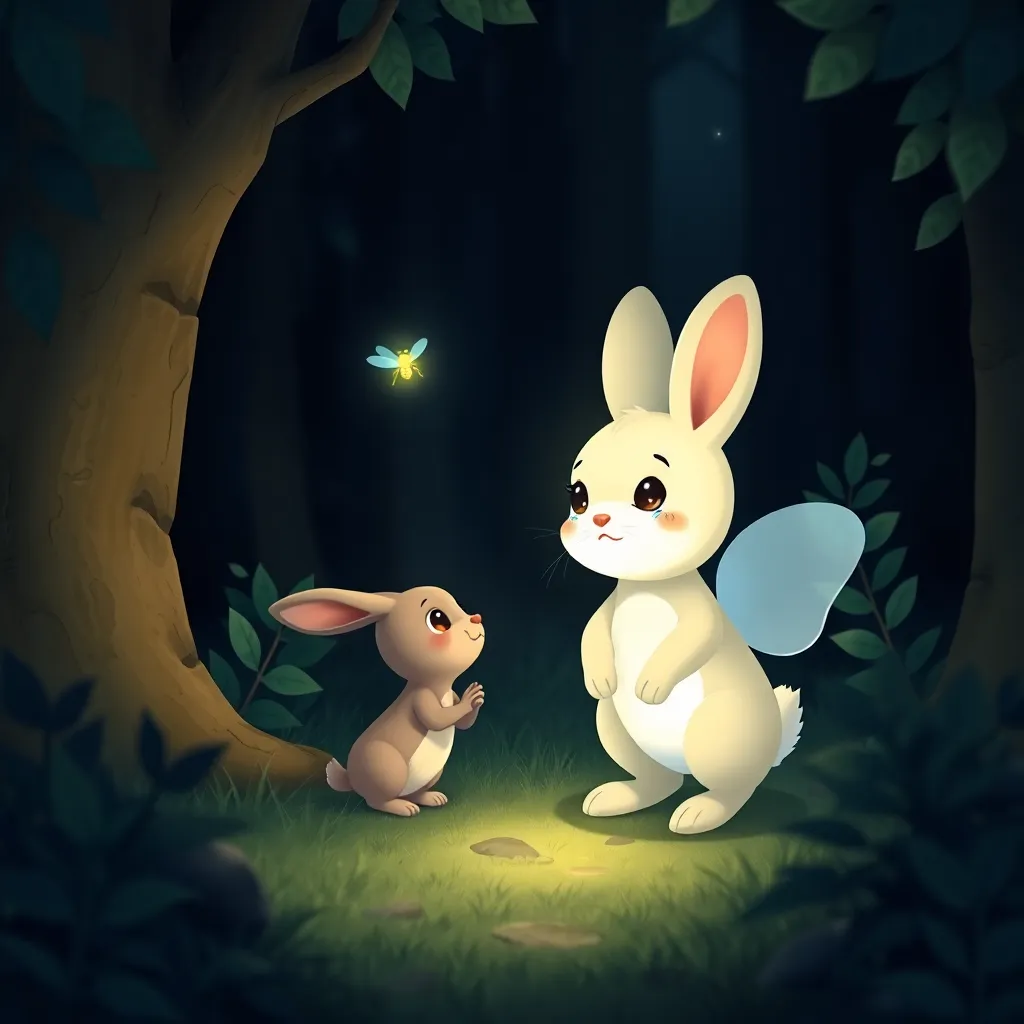Lumi, yolculuğuna cesaretle başladı. Işığı, önündeki yolu aydınlatıyordu. Önce, karanlıkta ağlayan küçük bir tavşan yavrusu gördü. Annesini kaybetmişti. Lumi hemen yanına gitti. 'Korkma,' dedi, 'Işığımı seninle paylaşırım, anneni birlikte buluruz.' Lumi, tavşan yavrusunun önünde uçarak ona yol gösterdi. Onun minik ışığı, tavşanın gözyaşlarını kuruttu ve sonunda annesine kavuşmalarını sağladı. Bu iyiliği yaptıktan sonra Lumi, ışığının biraz daha parladığını hissetti. Sevginin onu güçlendirdiğini anladı.
