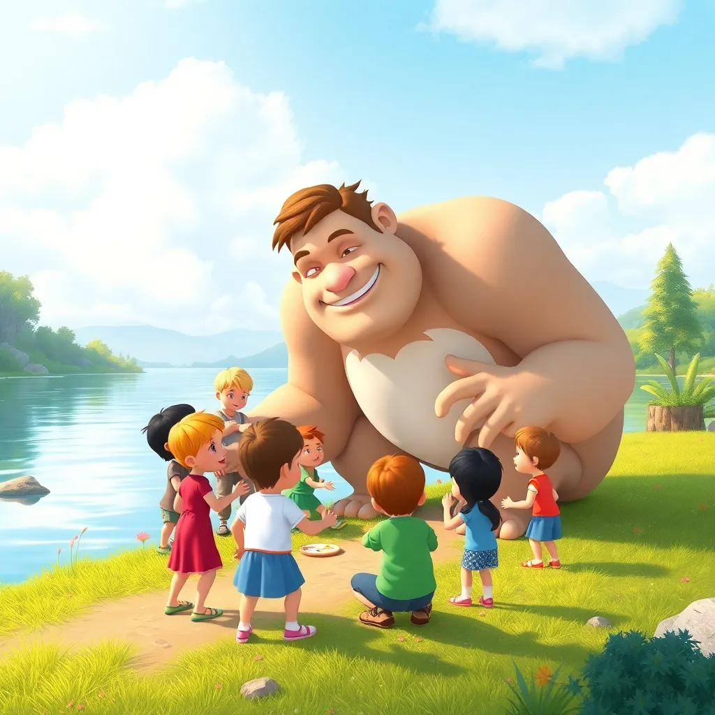 Ela gölün kenarında dolaşırken, suda devasa bir yüzün yansımasını görmüş. Korkuyla başını kaldırmış ve dağın tepesinde oturan dev Doruk'u fark etmiş. İlk başta çok korkmuş ama Doruk'un yüzündeki hüznü görünce kalbi ona acımış. 'Merhaba!' diye seslenmiş cesaretini toplayarak. Doruk şaşırmış, çünkü hiç kimse ona böyle gülümseyerek seslenmemiş. 'Mer... merhaba küçük insan' diye mırıldanmış sesi gürültülü ama nazikçe. Ela, 'Neden bu kadar üzgünsün?' diye sormuş. Doruk da yalnızlığını, kimsenin onunla oynamak istemediğini anlatmış.