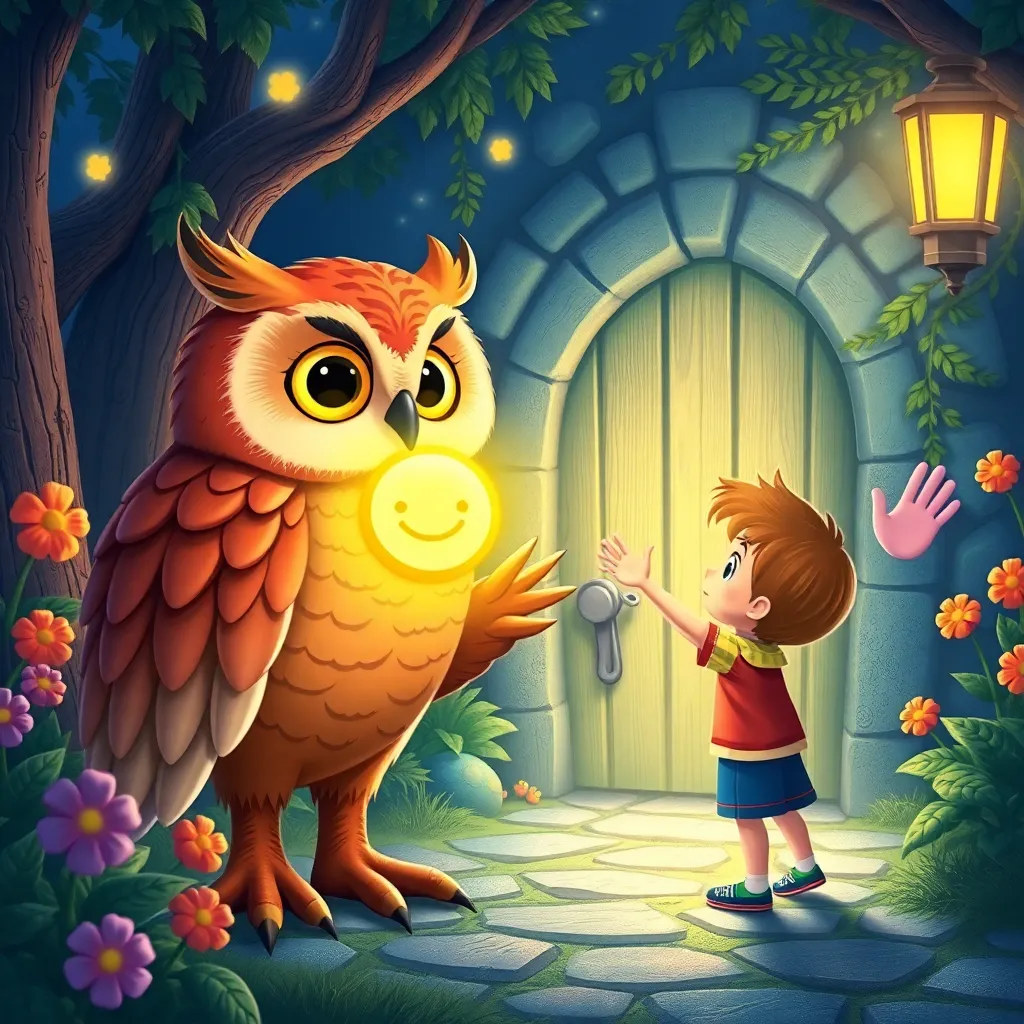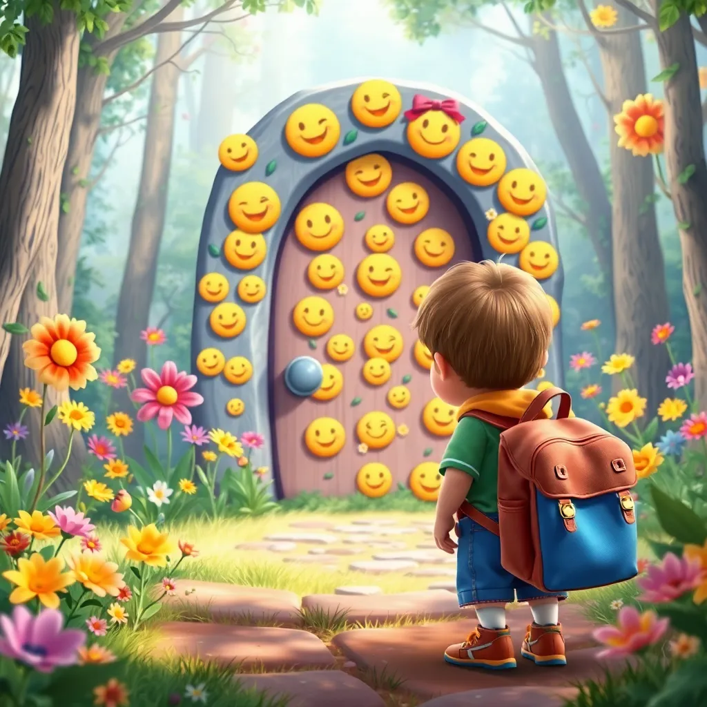 Bir zamanlar, Gökkuşağı Ormanı'nda yaşayan küçük bir çocuk varmış. Adı Can'mış. Can, her gün ormanda keşfe çıkmayı çok severmiş. Bir gün, daha önce hiç görmediği bir patikadan yürürken, rengarenk çiçeklerle çevrili, üzerinde gülümseyen yüzler olan tuhaf bir kapı görmüş. Kapının üzerinde, 'Sadece gülünce çalışırım' yazıyormuş. Can, merakla kapıya yaklaşmış ve elini uzatmış, ama kapı açılmamış. Sonra yazıyı hatırlayıp kocaman gülümsemiş. O anda, kapı yavaşça ışıldayarak açılmış!