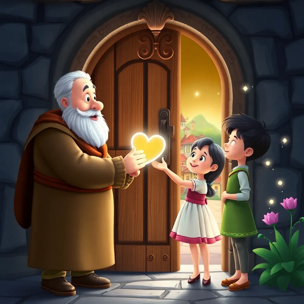 Gökkuşağı Köyü'nde, her şey rengarenk ve neşeliydi. Evler pastel boya ile boyanmış gibiydi, çiçekler şarkı söyler, bulutlar pamuk şekeri kokardı. Köyün girişinde ise yaşlı, bilge bir bekçi olan Bay Uğur otururdu. Bay Uğur'un sakalları kar gibi beyazdı ve gözleri sıcacık gülümserdi. Onun en önemli görevi, köyün büyük, oymalı ahşap kapısını açıp kapamaktı. Ama bu kapı sıradan bir kapı değildi! Kapı, yalnızca gerçek bir 'kalp anahtarı' ile açılırdı. Bay Uğur'un cebinde, minik bir kalp şeklinde olan gümüş bir anahtar vardı. Ancak bu anahtar, sihirli olduğu için yalnızca nazik bir kalple tutulduğunda parlar ve kapıyı açardı.