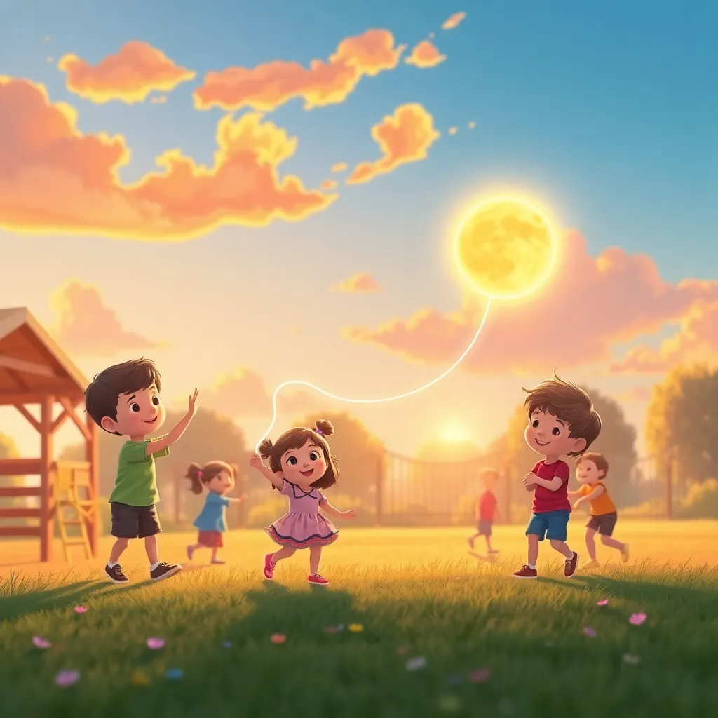 Sonra, Ela, Güneş'in ipini biraz daha çekmeye karar verdi. Güneş, biraz daha alçaldı ve gökyüzü turuncu ve pembe tonlara büründü. Bu, akşamüstüne benzeyen büyülü bir an yarattı. Ela, komşu çocuklarla birlikte, gölgelerin uzadığı bir oyun alanında buldu kendini. 'Güneş bize eşlik ediyor!' diye bağırdılar. İpi nazikçe tutarak, Güneş'i bir dans partneri gibi yönlendirdi; ışık, çocukların üzerinde dans etti. Bu, günün en keyifli zamanıydı, çünkü Ela, doğanın ritmini hissediyordu.