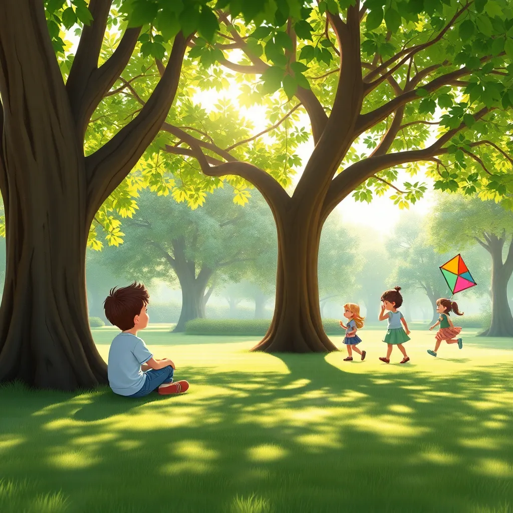 Parka vardıklarında, Leo hemen en güneşli tepeciğe koştu. Diğer çocuklar gölgeleriyle oynuyor, onları uzatıp kısaltıyor, gölge kovalamaca oynuyorlardı. Leo ise bir ağacın altına oturup onları izledi. İçinden 'Keşke benim de bir gölgem olsaydı' diye geçirdi. Tam o sırada, yanına küçük bir kız yaklaştı. Adı Zeynep'ti ve elinde rengarenk bir uçurtma vardı. 'Neden bizimle oynamıyorsun?' diye sordu. Leo biraz utangaç, 'Benim gölgem yok' diye mırıldandı. Zeynep şaşırdı, sonra gülümsedi: 'O zaman sen ışığın kendisiyle oynayabilirsin! Bak, güneş ışınları yaprakların arasından süzülüyor, sanki görünmez bir ressam resim yapıyor!'