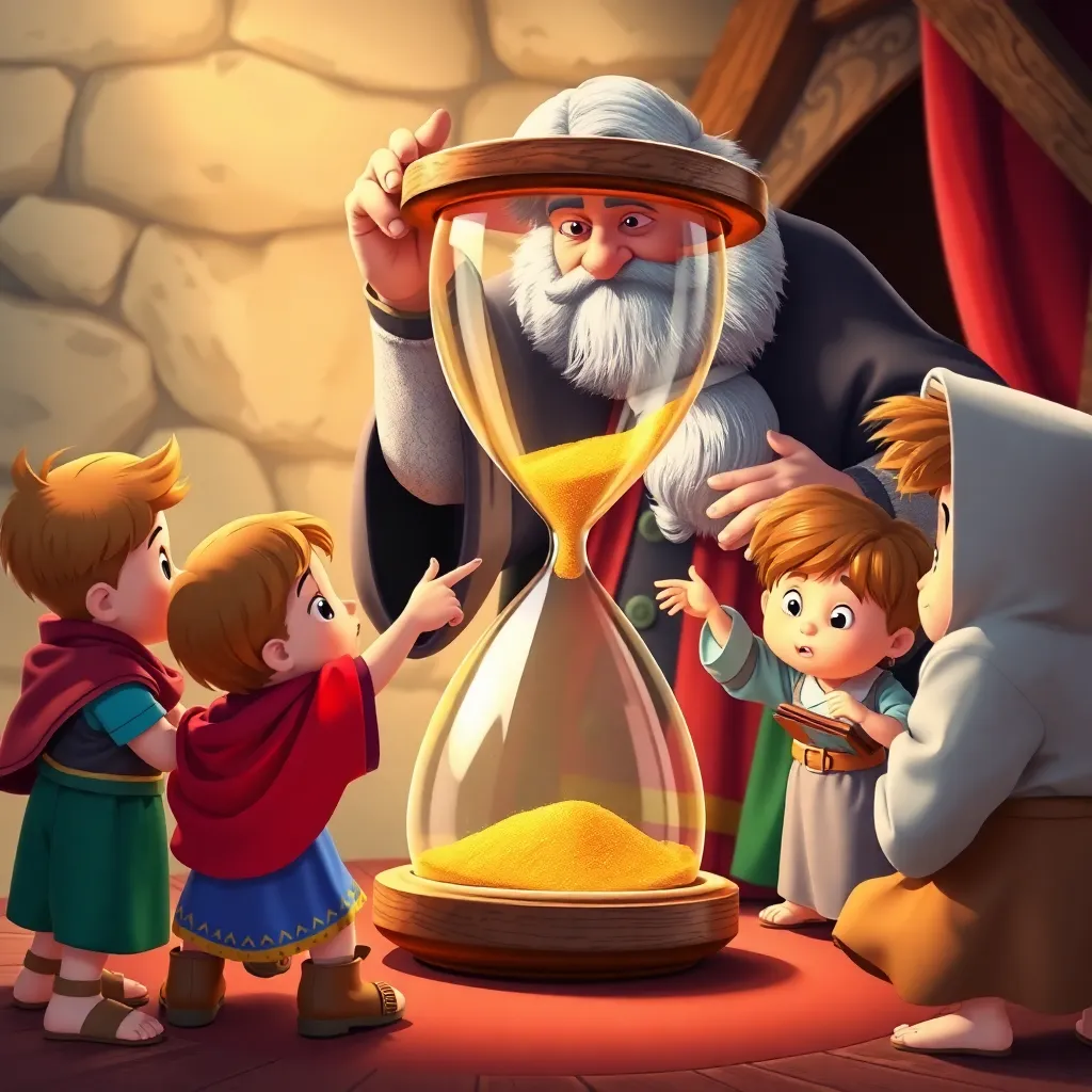Masal devam etti, ama Dede Zaman'ın anlattıkları hep karışıktı. 'Bir varmış, bir yokmuş, gece yarısı güneş doğmuş!' deyip durdu. Küçük Ali, merakla parmağını kaldırdı: 'Dede, gece yarısı güneş doğmaz ki!' Dede Zaman, kum saatine baktı ve içini çekti: 'Ah evladım, bu saat biraz bozuk galiba. İçindeki kum, bazen hızlı, bazen yavaş akıyor. Belki de zamanın ritmini kaybettim.' Çocuklar, kum saatini incelemek için toplandı. İçindeki altın kum, normalde yavaşça akması gerekirken, bazen duruyor, bazen de fırıl fırıl dönüyordu. Küçük Zeynep, 'Belki de ona yardım etmeliyiz!' diye fısıldadı. Böylece, Dede Zaman'ın zaman karışıklığını düzeltmek için bir macera başladı.