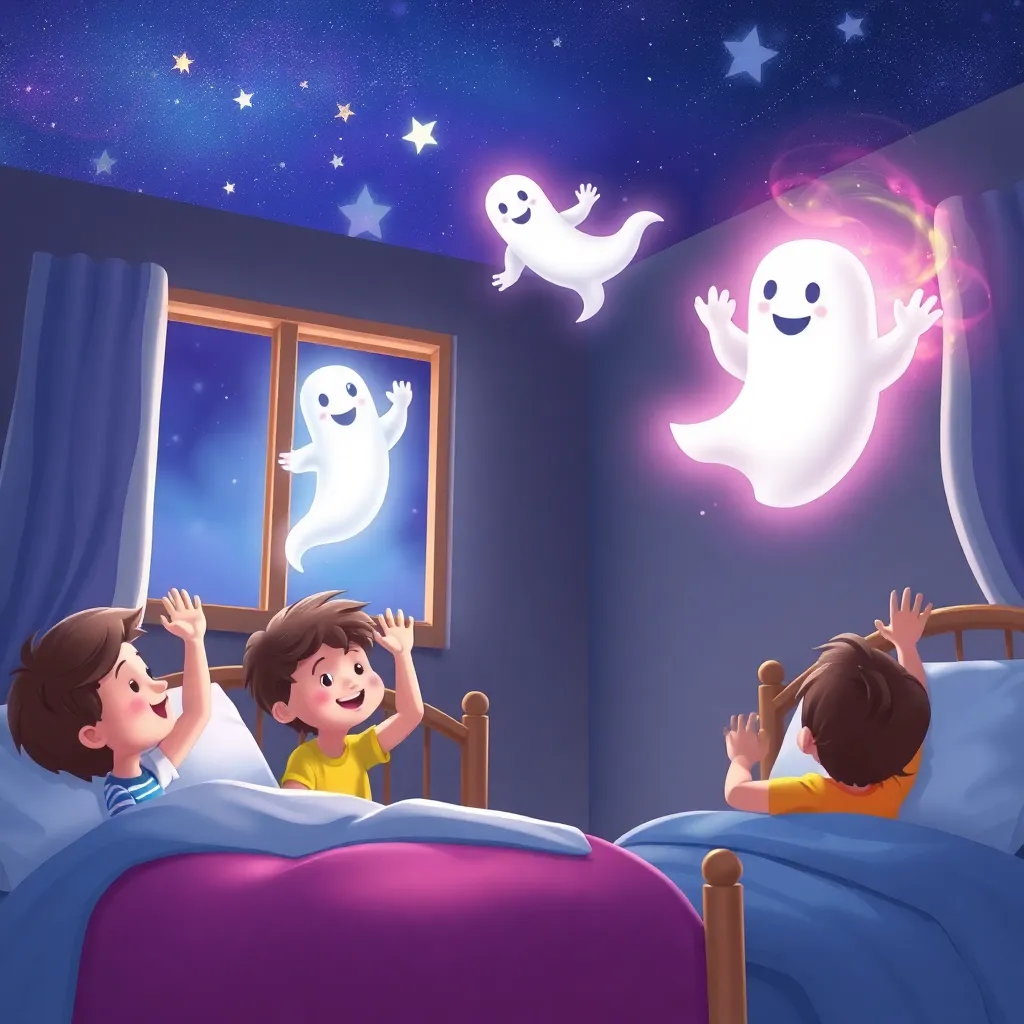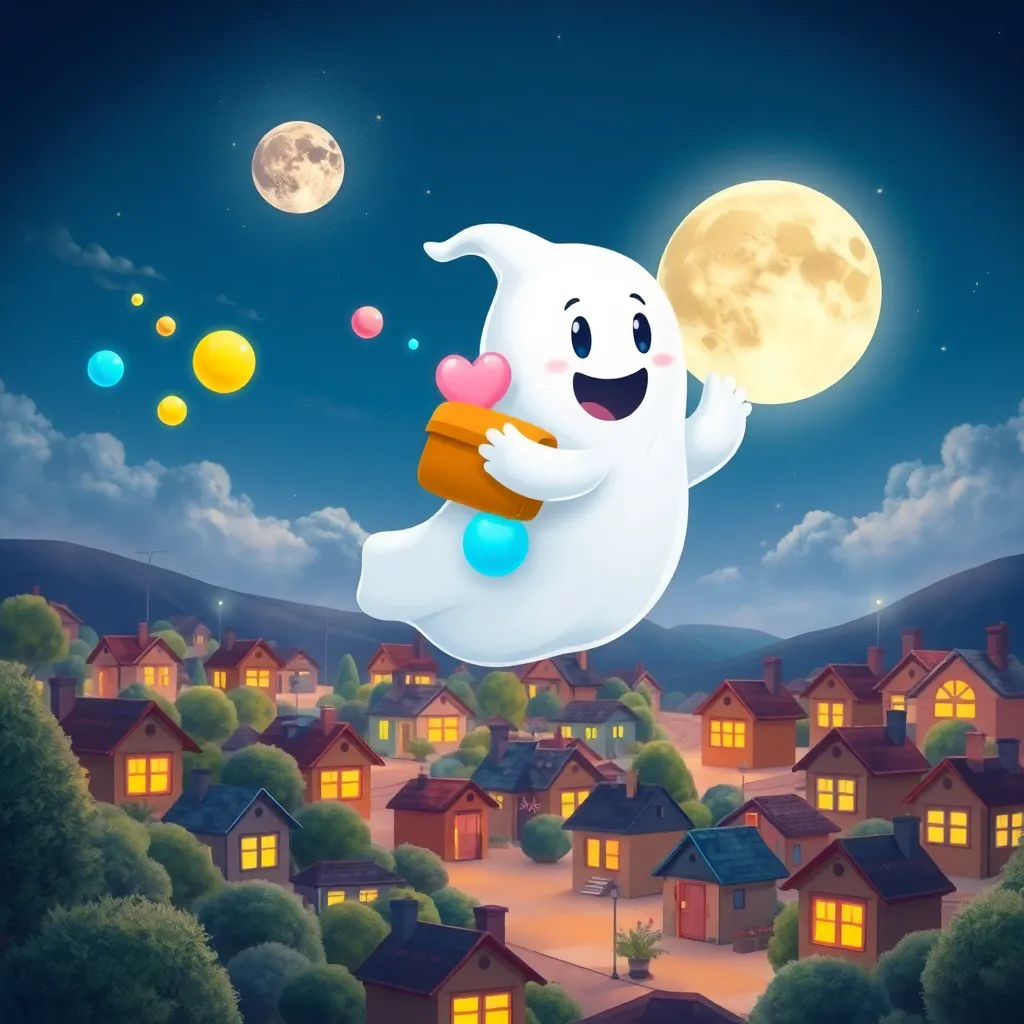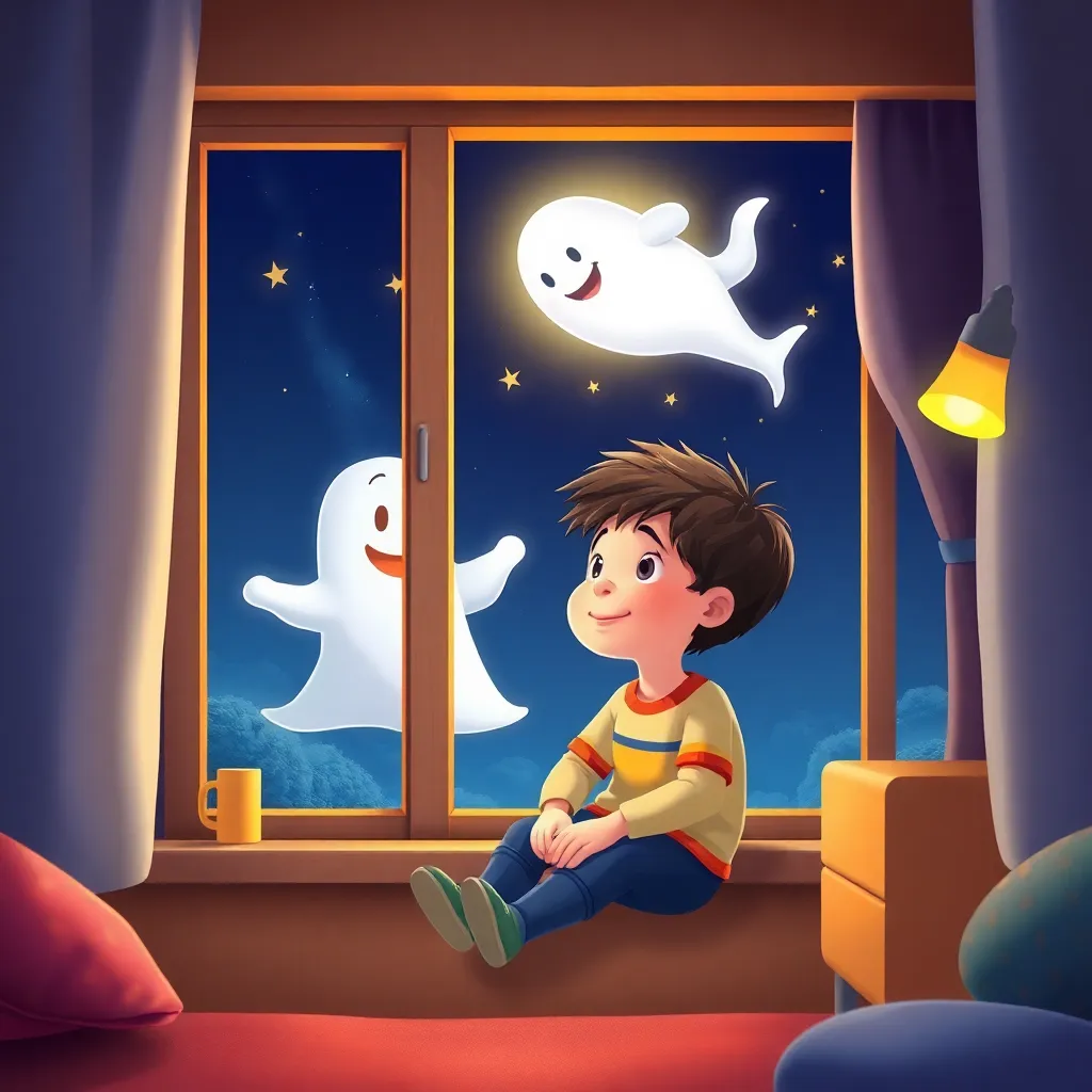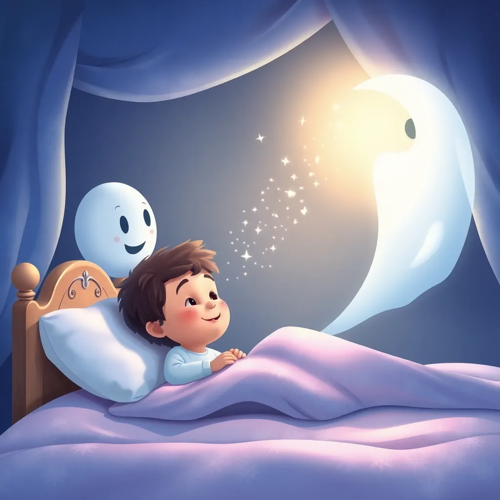 Gece olmuştu ve yıldızlar gökyüzünde pırıl pırıl parlıyordu. Uyku zamanı gelmişti. Deniz, yatağına uzanmış, gözlerini kapatmaya hazırlanıyordu. Tam o sırada pencereden içeri hafif, ışıltılı bir şey süzüldü. Bu, Rüya Avcısı adında tatlı bir hayaletti! Adı Rüfik'ti. Rüfik, şeffaf ve yumuşak bir ışık gibiydi, mavi-beyaz renklerde parlıyordu ve sürekli gülümsüyordu. Elinde ise büyülü, parlak bir kelebek ağı tutuyordu. Bu ağla, çocukların rüyalarını topluyordu. Deniz'in başının üzerinde, henüz oluşmaya başlayan, pembe ve altın rengi bir rüya bulutu belirdi. Rüfik, ağını nazikçe salladı ve rüyayı yakaladı. Rüya, ağın içinde minik bir baloncuk gibi ışıldadı. Rüfik, 'Harika bir rüya bu!' diye fısıldadı ve onu sırtındaki görünmez bir torbaya koydu. Sonra, sessizce pencereden çıkıp geceye karıştı. Deniz ise derin ve rüyasız bir uykuya daldı.