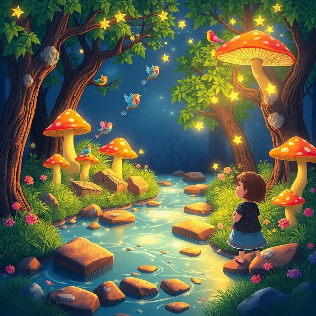 Mantarcık, Selin'i ormanın derinliklerine götürdü. Yolda, konuşan bir dereyle karşılaştılar. Dere, şarkı söyler gibi akıyordu: 'Benim adım Şırıltı, suyum berrak, içinde yıldızlar parlar!' Selin, deredeki suyun gerçekten de minik yıldızlar gibi parladığını görünce gözleri faltaşı gibi açıldı. Biraz ilerlediklerinde, renkli tüyleri olan kuşlar dallarda şarkı söylüyordu. Her kuşun şarkısı farklı bir renk yayıyordu havaya. Selin, 'Bu orman gerçekten sihirli!' diye fısıldadı. Mantarcık gülümsedi: 'Evet, ama sihri korumak için özen göstermek gerek. Orman Koruyucusu buna çok dikkat eder.'