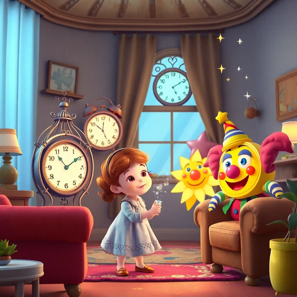 Sena evi dolaşmaya başladığında daha da şaşırdı. Salondaki kuş kafesi şeklindeki saat cik cik ötüyor, 'Kahvaltı zamanı!' diye şarkı söylüyordu. Yatak odasındaki yıldız şeklindeki saat yumuşak bir sesle, 'Uyku vakti yaklaşıyor, pijamalarını hazırla' diye fısıldıyordu. En sevdiği ise oyun odasındaki palyaço saat oldu. Renkli saçları olan bu saat, 'Haydi oyun oynayalım! Ben saklambaç saatiyim, seni her zaman bulurum!' diye gülüyordu. Sena saatlerle konuşmaya başladıkça, her birinin farklı bir kişiliği olduğunu fark etti. Bazıları ciddi, bazıları şakacı, bazıları ise biraz unutkandı.