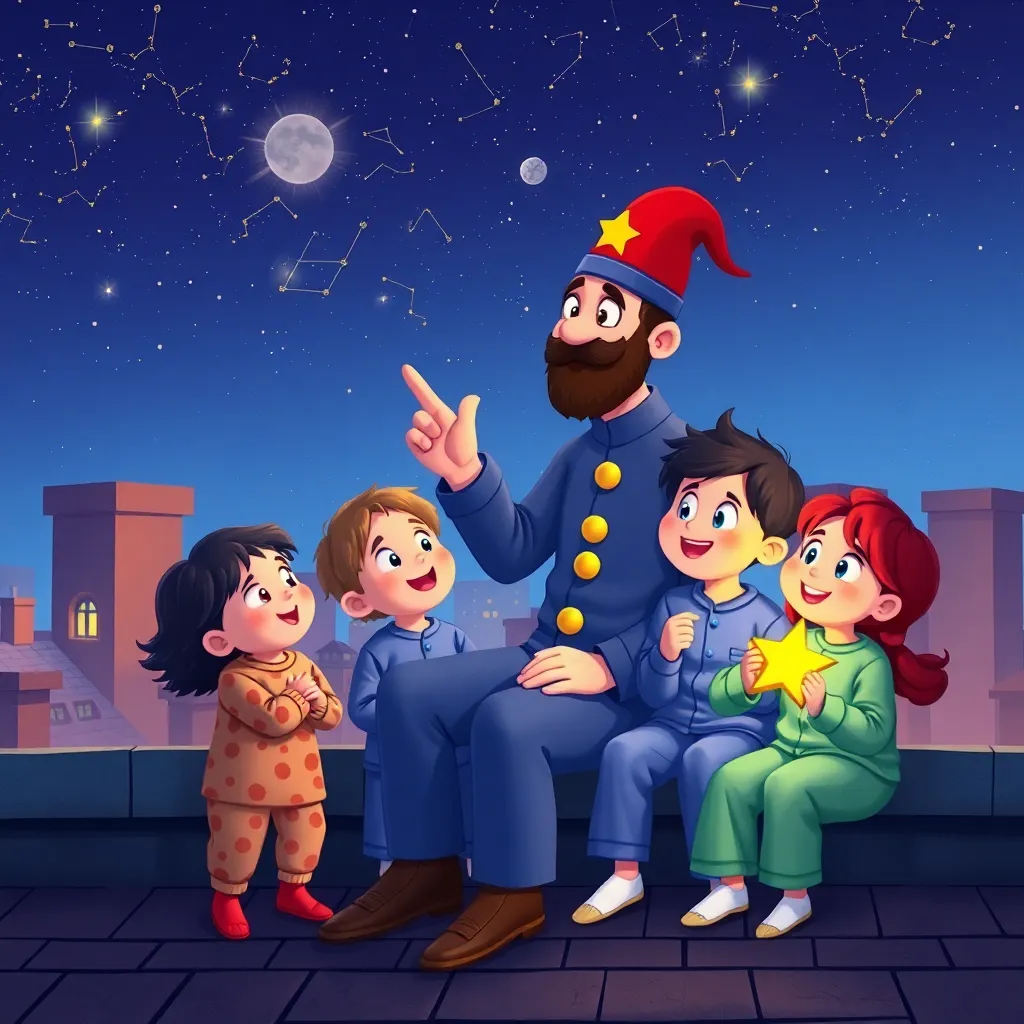 Uzun zaman önce, minik bir kasabada, herkesin 'Bekçi Bay Yıldız' dediği, çok özel bir gece bekçisi yaşardı. Asıl adı Rüzgar'dı, ama onu bu adla herkesten çok yıldızlar çağırırdı. Bay Yıldız'ın görevi, geceleri kasabanın sokaklarında dolaşmak, herkes uyurken her şeyin güvende olduğundan emin olmaktı. Ama onun en büyük sırrı, gerçekten de yıldızlarla konuşabilmesiydi! Her gece, en yüksek tepedeki küçük kulübesinin çatısına çıkar, sıcak bir çayını yudumlar ve gökyüzündeki parlak dostlarına el sallardı. Yıldızlar da ona göz kırpar, hafifçe titreşerek 'Merhaba, Bay Yıldız!' derlerdi. Onlar için, o, yeryüzündeki en iyi dinleyiciydi.