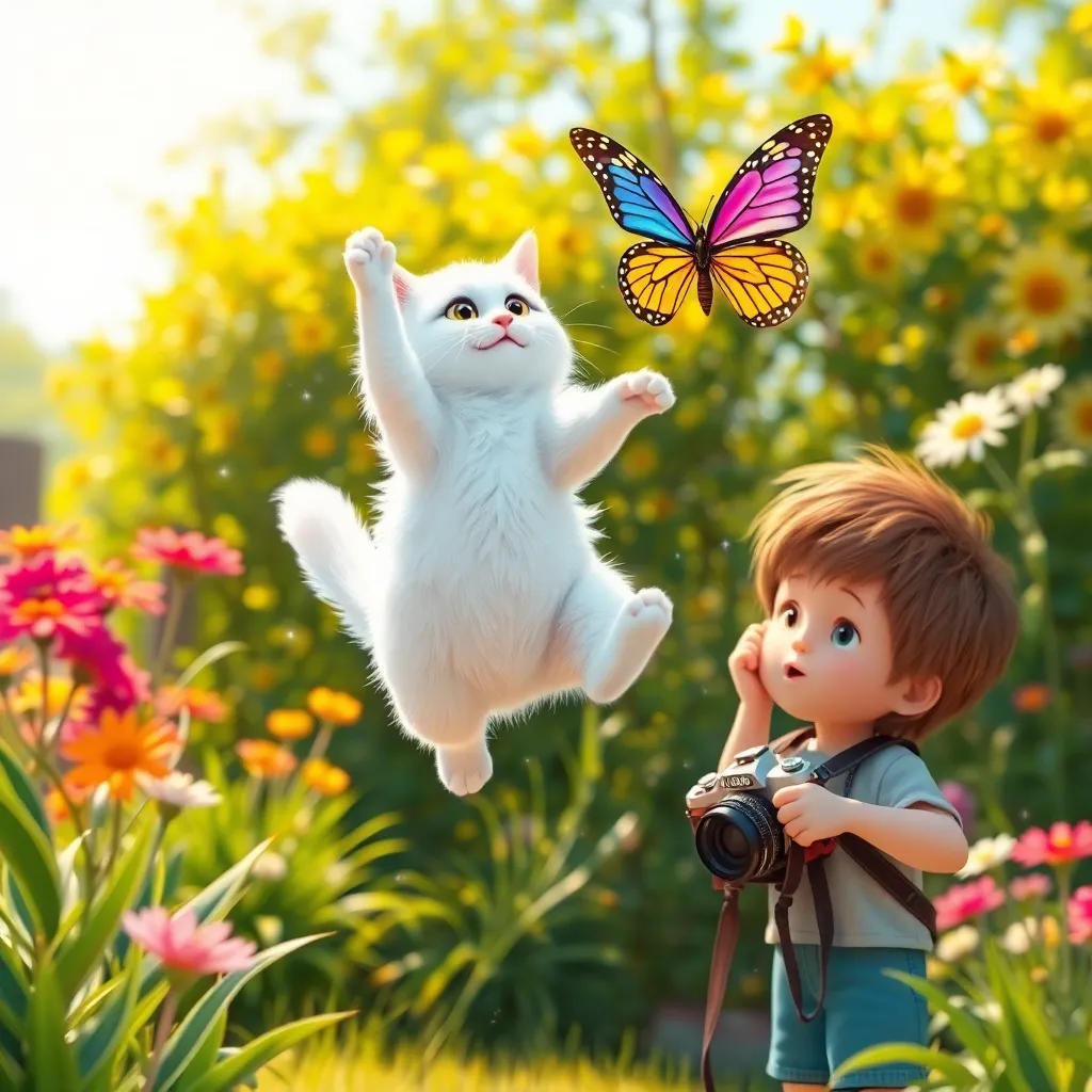 Bahçede, en sevdiği elma ağacının altında oturan kedisi Pamuk'u gördü. Tam o sırada, Pamuk havaya zıplayıp bir kelebeği yakalamaya çalışıyordu. Efe hemen makineyi doğrultup deklanşöre bastı. Flaş patladığında garip bir şey oldu: Pamuk tam havada asılı kaldı! Kelebek de kanatlarını açmış halde dondu, üzerindeki turuncu desenler parlıyordu. Efe şaşkınlıkla yaklaştı. Pamuk'un tüyleri rüzgarda savrulur gibiydi ama hareket etmiyordu. Bu gerçekten bir zaman dondurma makinesiydi!