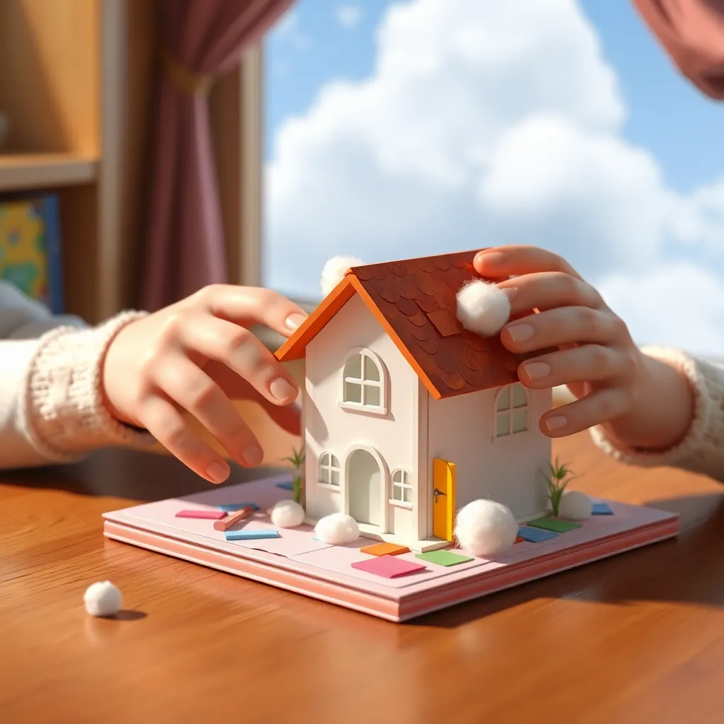 Deniz, masasının başına oturdu ve bulut evinin bir modelini yapmaya başladı. Pamukları yumuşakçana yapıştırarak duvarları ve çatıyı oluşturdu. Mavi krepon kağıdından pencereler, kırmızı bir kapı yaptı. Evini süslemek için küçük çiçek çıkartmaları bile yapıştırdı. Bu sırada pencereden dışarı baktı ve ilginç bir şey fark etti. Gökyüzünde, tam da modelindeki gibi kabarık, şekillendirilmeye hazır görünen devasa bir beyaz bulut vardı. 'Belki de,' diye mırıldandı, 'bulutlar da hayal kurmayı sever.' O anda, hafif bir rüzgar esintiyle perdesini dalgalandırdı ve Deniz, bulutun yavaşça şekil değiştirdiğini, adeta bir köşk gibi görünmeye başladığını hayal etti.