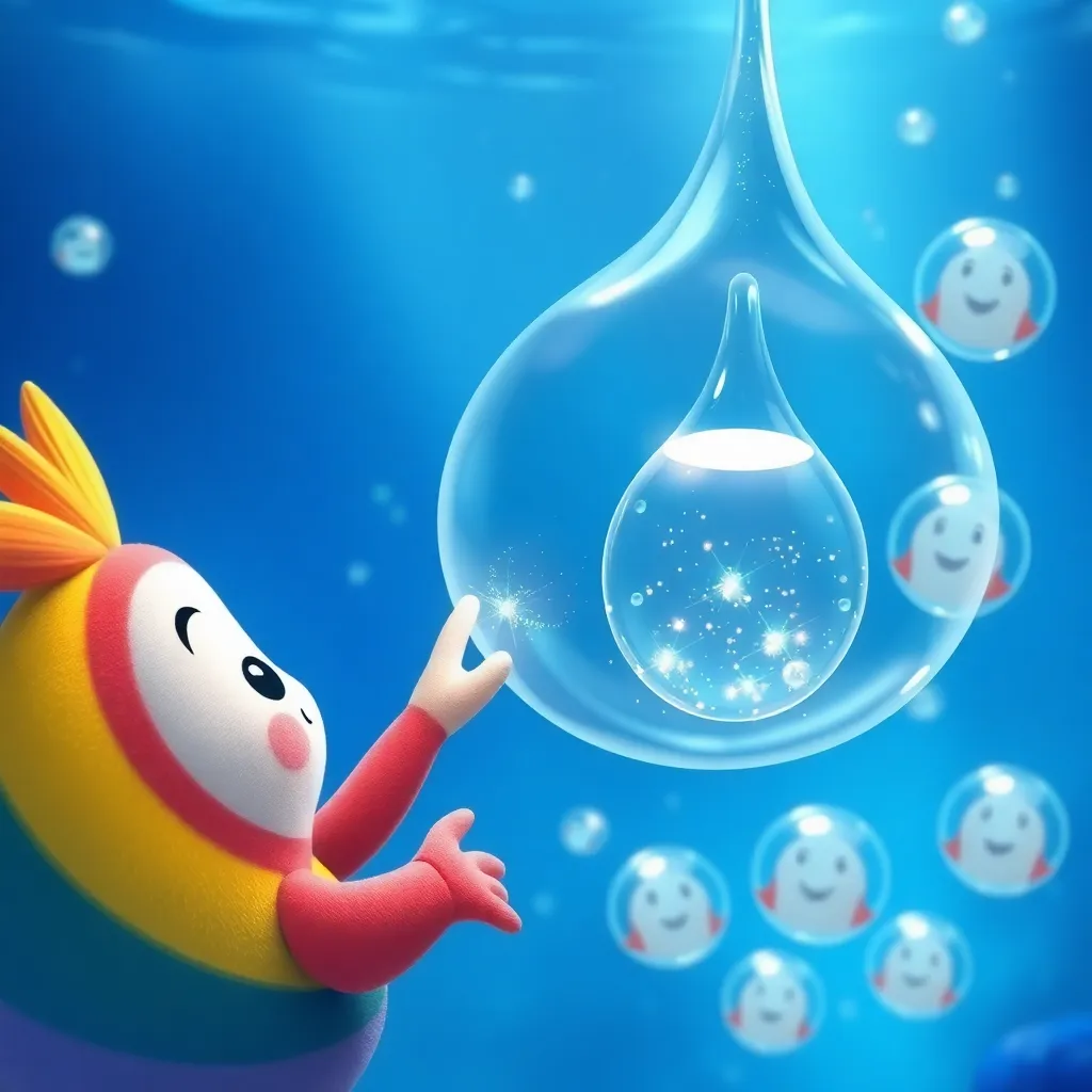 O anda mucizevi bir şey oldu. Bir yağmur damlası suya düştü ve suyun altında küçük, hava kabarcığından bir çan şeklini aldı. Bu küçük çan, yumuşak bir 'pling' sesi çıkararak Damla'ya doğru süzüldü. Damla, şaşkınlıkla bu güzel şeye dokundu. Kabarcık, ona dokunur dokunmaz patladı ve içinden minik, ışıltılı bir mesaj çıktı: 'Merhaba! Ben Damla'yım, gökyüzünden geliyorum. Seninle arkadaş olmak istiyorum!' Damla'nın gözleri büyüdü. Yağmur damlaları canlıydı ve onlarla konuşabiliyordu! Daha fazla damla suya düştü ve her biri küçük kabarcık çanlar oluşturarak etrafında dans etti. Her biri kendini tanıttı: 'Ben Sulu'yum!', 'Ben Pıtır'ım!', 'Ben Çisili!'