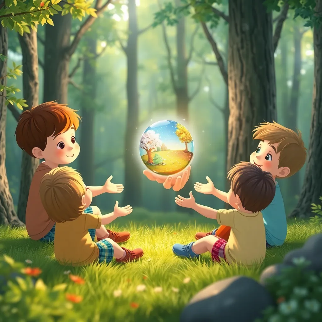 Kardeşler bir daire oluşturup oturdular. Her biri ceplerinden tohumlarını çıkardı. İlkbahar'ın tohumu pembe ve yumuşak, Yaz'ınki altın sarısı ve sıcak, Sonbahar'ınki turuncu-kırmızı ve hışırtılı, Kış'ınki ise buz mavisi ve pürüzsüzdü. Tohumlarını avuçlarının içine koydular ve birbirlerine uzattılar. Elleri birleştiği anda, dört tohum parlak bir ışıkla birleşerek tek bir parıltılı küre oldu. Bu küre, dört mevsimin uyum içinde döndüğü minik bir dünyaydı. Mevsim Rüzgarı, bu ışığa doğru yavaşça yaklaştı. Kürenin etrafında dönmeye, önce yavaş, sonra düzenli bir ritimle esmeye başladı. Artık karışık değil, sakin ve istikrarlıydı.