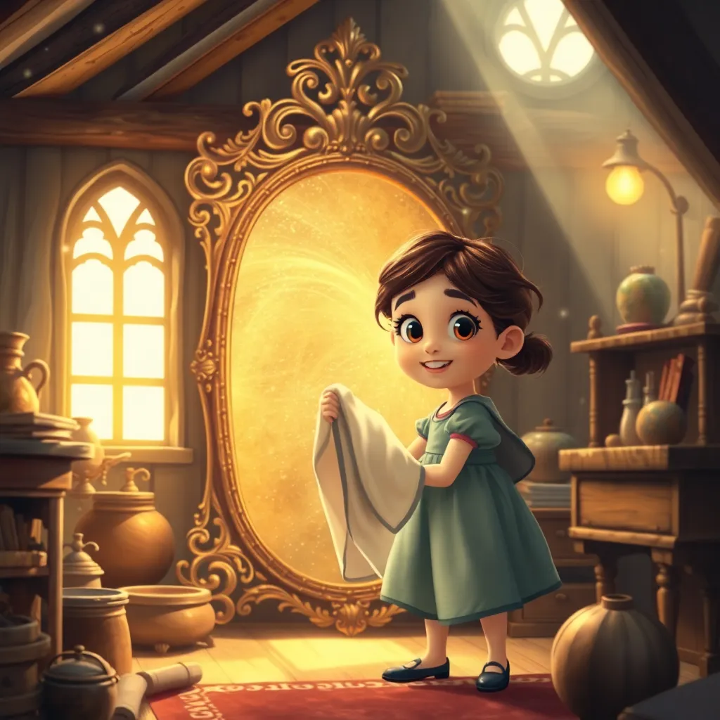 Zaman geçti, Elif büyüdü ama aynanın dersi hep yüreğinde kaldı. Kendi çocukları olduğunda, onlara da büyükannesinin tavan arasındaki sihirli aynanın hikayesini anlattı. "İnsanlar bazen aynalara bakıp saçlarının, giysilerinin nasıl göründüğüne takılırlar," dedi. "Ama asıl önemli olan, yürek aynamıza bakmaktır. O ayna, ne kadar nazik, yardımsever ve sevgi dolu olduğumuzu gösterir. İşte gerçek yüzümüz, gerçek güzelliğimiz budur." Ve o gün, çocuklarıyla birlikte tavan arasına çıktılar. Ayna hâlâ oradaydı ve Elif'in çocukları ona dokunduğunda, onlar için de yumuşak, sıcacık bir altın ışık parladı. Çünkü iyiliğin ışığı asla sönmez, yürekten yüreğe geçerek hep parlamaya devam eder.