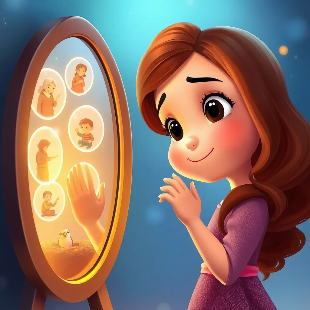 Şaşkınlık içinde aynaya yaklaştı ve elini uzattı. Cam soğuk değil, ılıktı. Tam o sırada, aynanın içindeki ışık hafifçe titreşti ve yumuşak, müzikal bir ses duyuldu: "Merhaba Elif. Ben Yürek Aynasıyım. Dış görünüşleri değil, içindeki güzellikleri gösteririm." Elif'in gözleri kocaman açıldı. "İçimdeki güzellik mi?" diye mırıldandı. Ayna tekrar konuştu: "Evet. Bana bak. Ne görüyorsun?" Elif dikkatle baktı. Altın ışığın içinde, minik sahneler belirmeye başladı: Komşusuna taşımasında yardım ettiği için teşekkür eden yaşlı teyzenin gülümsemesi, düşen kuş yavrusunu yuvasına yerleştirirken hissettiği sevinç, kardeşini uyuturken söylediği ninni... Bunlar, dışarıdan görünmeyen, onun yüreğindeki iyilik anlarıydı.