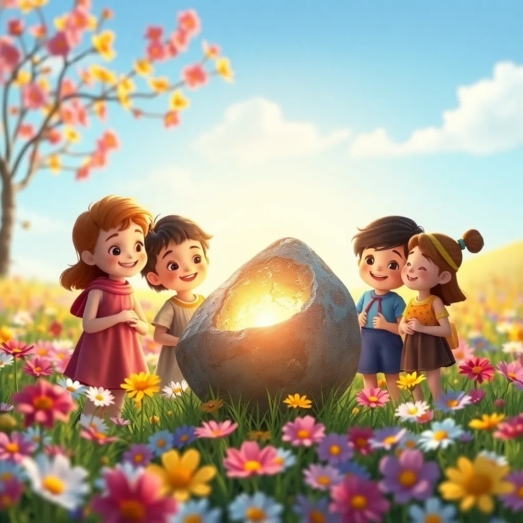 Bir zamanlar, Anneokulu adında sevimli bir köy vardı. Bu köydeki çocuklar her akşam gökyüzünü izlemeyi çok severdi. Bir yaz gecesi, minik Ayşe penceresinden yıldızlara bakarken, gökyüzünde parlak bir iz gördü. Bu, yavaşça süzülen küçük bir göktaşıydı! Göktaşı, köyün kenarındaki çiçek tarlasına usulca indi, bir kar tanesi kadar yumuşak. Sabah olunca, çocuklar heyecanla tarlaya koştular. Göktaşı hâlâ hafifçe ışıldıyordu ve üzerinde minik, gümüş rengi desenler vardı. En ilginci, tam ortasında küçük bir çatlak oluşmuştu ve içinden tatlı, ılık bir ışık sızıyordu.