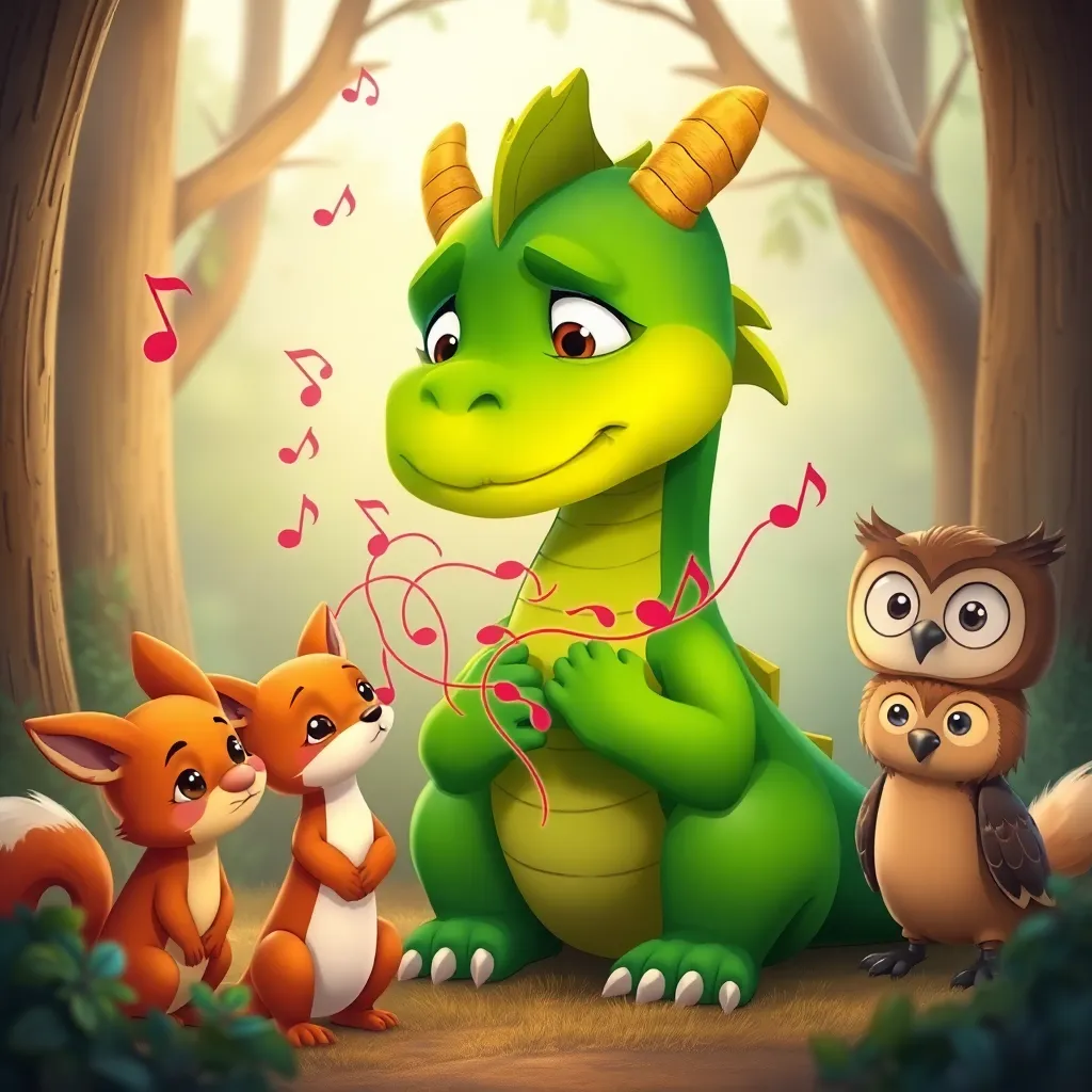 Uzaklardaki, Melodi Ormanı adında bir yer vardı. Bu ormanın en özel sakini, adı Solfej olan küçük bir ejderhaydı. Solfej, diğer ejderhalardan çok farklıydı. Ateş püskürtmek yerine, her öksürdüğünde rengarenk müzik notaları çıkaran, yumuşacık yeşil pulları olan sevimli bir ejderhaydı. 'Ahapşuu!' dediğinde, ormana neşeli bir melodi yayılırdı. Ormandaki tüm hayvanlar, Solfej'in öksürüklerini sabırsızlıkla bekler, çıkan melodilere göre dans ederlerdi. Solfej, bu özelliğini çok severdi, çünkü onun sayesinde orman her zaman neşe ve müzikle doluydu.