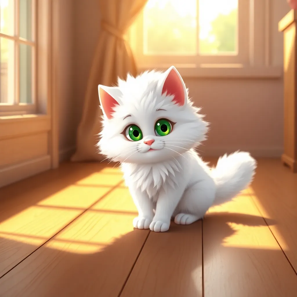 Pamuk adında beyaz tüylü, yeşil gözlü çok sevimli bir kedi varmış. Pamuk, Ayşe'nin evinde yaşarmış ve her sabah güneş pencereden içeri süzüldüğünde çok heyecanlanırmış. Çünkü güneşin geldiği yerde, siyah bir kedi belirirmiş! Bu siyah kedi, Pamuk ne yaparsa onu taklit edermiş. Pamuk kuyruğunu sallasa, o da sallarmış. Pamuk zıplasa, o da zıplarmış. Bir gün Pamuk merakla düşünmüş: 'Acaba bu siyah kedi benimle oyun mu oynamak istiyor?'