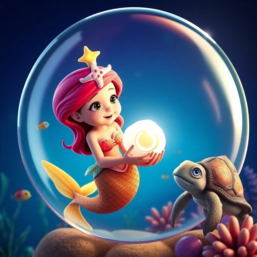 Derin mavi okyanusun en sakin köşesinde, güneş ışınlarının zar zor ulaşabildiği bir yerde, Parlak Baloncuklar Şehri vardı. Bu şehir, devasa, rengarenk cam baloncuklardan oluşmuştu ve her biri, içinde yaşayan deniz canlıları için özel bir evdi. Şehrin merkezinde, en büyük cam baloncukta, deniz yıldızı taçlı küçük bir deniz kızı olan İnci yaşıyordu. İnci, meraklı ve cesur bir deniz kızıydı; her gün şehrin etrafında yüzer, yeni arkadaşlar edinir ve okyanusun harikalarını keşfederdi. Bir sabah, şehrin en yaşlı bilge kaplumbağası Midos, İnci'ye eski bir deniz kabuğu getirdi. Kabuğun içinden hafif bir ışık yayılıyordu ve üzerinde tuhaf, parlayan işaretler vardı. Midos, 'Bu kabuk, şehrimizin en büyük sırrını saklıyor, İnci,' dedi. 'Ama onu anlamak için, okyanusun üç harikasını bulmalısın: Işık Saçan İnci'yi, Şarkı Söyleyen Mercan'ı ve Dans Eden Deniz Yosunu'nu.' İnci'nin gözleri heyecanla parladı. Bu, hayatının en büyük macerası olacaktı!