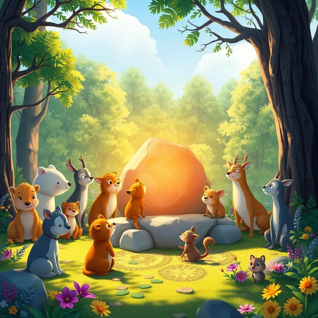 Bir zamanlar, Gülümse Vadisi adında çok özel bir yer vardı. Bu vadide yaşayan tüm hayvanlar mutluydu ama onların en büyük merakı, ormanın derinliklerinde duran Konuşan Taş'tı. Bu taş sıradan bir taşa benzemiyordu - rengi gökkuşağı gibi değişiyor, üzerinde minik yıldız desenleri parlıyordu. Ancak en şaşırtıcı özelliği, sadece pazar günleri konuşabilmesiydi! Diğer günlerde sessizce durur, sadece hafifçe ışıldardı. Küçük sincap Cemil, bu taşı ilk kez bir pazar sabahı keşfetmişti. Taş o gün ona 'Merhaba küçük dostum, bugün güneş ne kadar güzel parlıyor, değil mi?' demişti. Cemil öyle şaşırmıştı ki, tüm ormana haber vermek için koşup durmuştu.