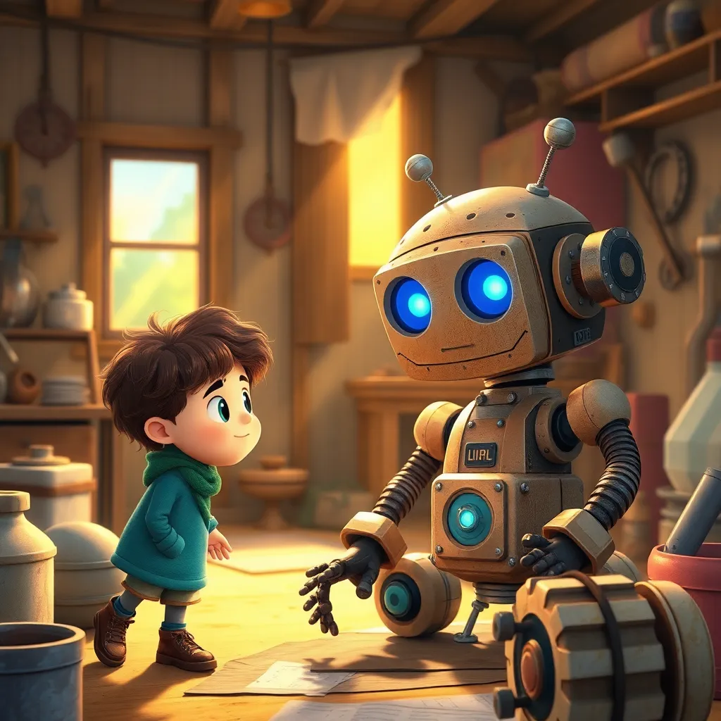 Benim adım Ali. Altı yaşındayım ve dünyadaki en harika arkadaşa sahibim. Onun adı Tıkır. Tıkır bir robot! Babam geçen yaz bir tamir atölyesinden getirdi onu. İlk gördüğümde biraz eski ve paslı görünüyordu. Mavi gözleri titriyor, metal elleri gıcırdıyordu. Ama babam 'Her şeyin bir kalbi vardır Ali,' dedi. 'Bazen o kalbi bulmak biraz zaman alır.' Tıkır'la ilk tanıştığımız gün, ona doğru yavaşça yaklaştım. O da kafasını yana eğip 'Merhaba' dedi robotik ama sıcak bir sesle. O andan itibaren en iyi arkadaş olduk.